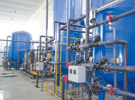 雙室浮動床是在單室浮動床中裝設(shè)一塊帶雙頭水帽的多孔板,分成兩室,上室裝填強(qiáng)型樹脂.下室裝弱型樹脂。在雙室浮動床中,兩種樹脂各自為對方提供了有利的工作條件,即弱型樹脂為強(qiáng)型樹脂提供了高再生水平。從而提高了強(qiáng)型樹脂的工作交換容量,而強(qiáng)型樹脂又允許弱型樹脂有較高的漏過,充分發(fā)揮了弱型樹脂的特長,這樣將提高再生效率、高再生容量的弱型和在高再生水平下工作的強(qiáng)型樹脂聯(lián)臺應(yīng)用于水的化學(xué)除鹽,可以在1013的再生比耗下,使陽離子交換工藝的平均工作交換容量達(dá)到1300—1 700mep/LR,陰離子交換工藝的平均工作交換容量達(dá)到600- 900mep/LR,這是其它工藝所達(dá)不到的。另外,雙室浮動床還具有用水率低,運(yùn)行操作簡單及可在高流速下運(yùn)行等特點(diǎn)。