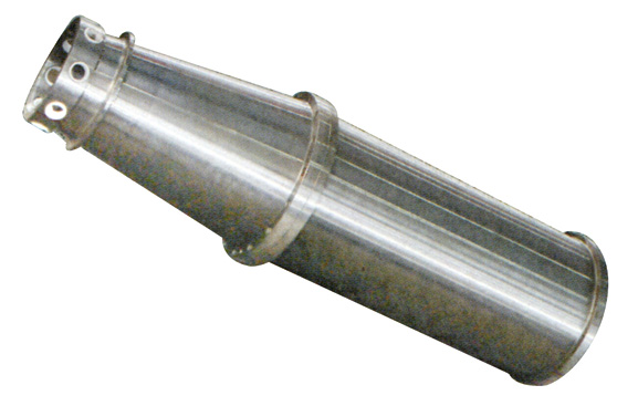 無孔轉鼓內套裝有目心的卸料螺旋,兩者高速同向旋轉的同時,又具有一定的轉速差,該轉速差由傳動系統(tǒng)及差速器產(chǎn)生。懸浮液由進料管進入輸料螺旋內腔。經(jīng)加速后進入轉鼓內,在離心力的作用下,密度較大的固相顆粒物沉降到轉鼓內壁,形成沉渣環(huán)層,并被卸料螺旋不斷送到轉鼓小端而排出轉鼓外,澄清的液體不斷從轉鼓大端的溢流口排出轉鼓外,從而實現(xiàn)懸浮液的固體分離。