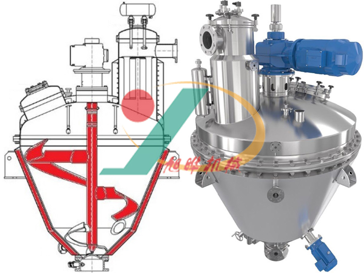 無(wú)錫旭曄機(jī)械開發(fā)的真空單錐干燥機(jī)是一種集減壓蒸餾、粉碎、混粉、干燥為一體的高效多功能全密閉立式真空干燥設(shè)備,全密閉立式真空螺帶干燥機(jī)的干燥效率是同等規(guī)格雙錐回轉(zhuǎn)真空干燥機(jī)、真空箱式烘3~5倍。真空單錐干燥機(jī)結(jié)合特殊干燥工藝,能適應(yīng)粘度大、熱穿透性差,易滾球、易抱團(tuán)成塊的物料的干燥。