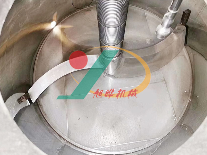 6、攪拌系統(tǒng)配置S型內(nèi)加熱雙葉式空心攪拌器,可對濾餅進(jìn)行充分?jǐn)嚢韬图訜幔岣呦礈旌透稍镄?