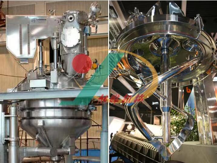 過濾洗滌干燥機(業(yè)內(nèi)俗稱“三合一”)能實現(xiàn)物料的過濾、洗滌、干燥、滅菌、卸料等連續(xù)工藝過程,其操作方式屬于分批式操作(間歇操作),廣泛應(yīng)用于制藥、食品、農(nóng)藥、化工等領(lǐng)域,可以避免物料在轉(zhuǎn)移過程中可能引起的物料損失、污染及環(huán)境污染,F(xiàn)有三合 一的結(jié)構(gòu)是平板式,但是在長期生產(chǎn)使用中發(fā)現(xiàn)一些缺陷,例如:圓形平底過濾面積小:側(cè)面出料,導(dǎo)致出料不徹底;干燥效果不理想,干燥過程中的物料翻動小,換熱效率低,干燥效果受限制等。